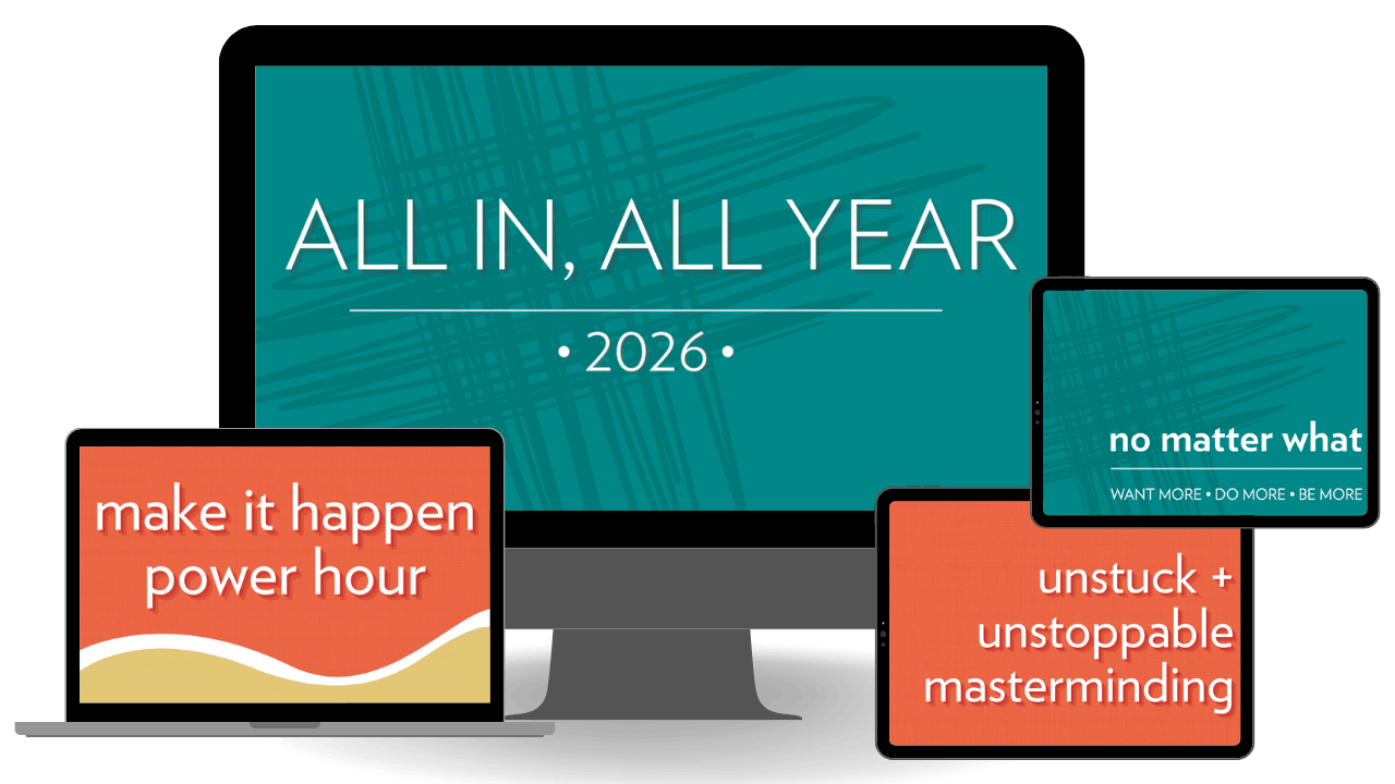 ALL IN, ALL YEAR™ is a full year of structure, support, and momentum for impatiently ambitious entrepreneurs ready to trade second-guessing for consistent follow-through on what matters most to them.