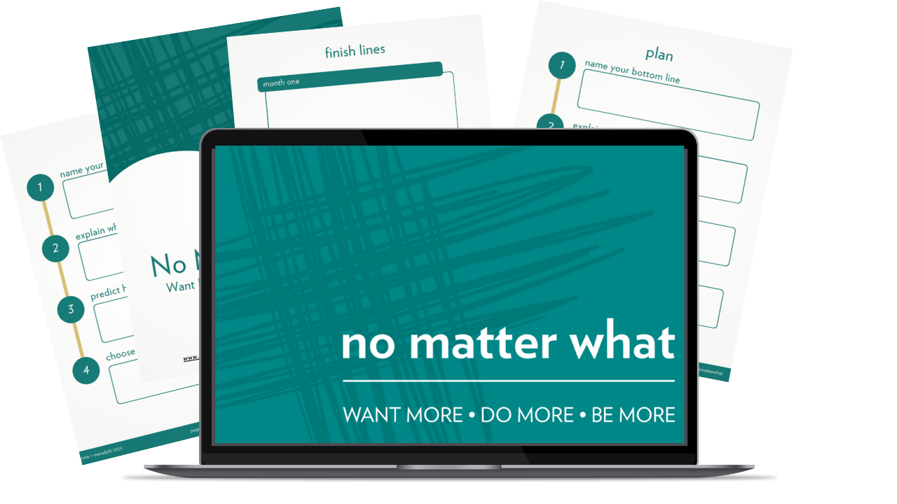 No Matter What is a live, virtual coaching intensive where you’ll lock in a 90-day direction rooted in your values, goals, and future self — not your to-do list of doom, your Tetris-board calendar, or your 52 open tabs whispering “pick me!”